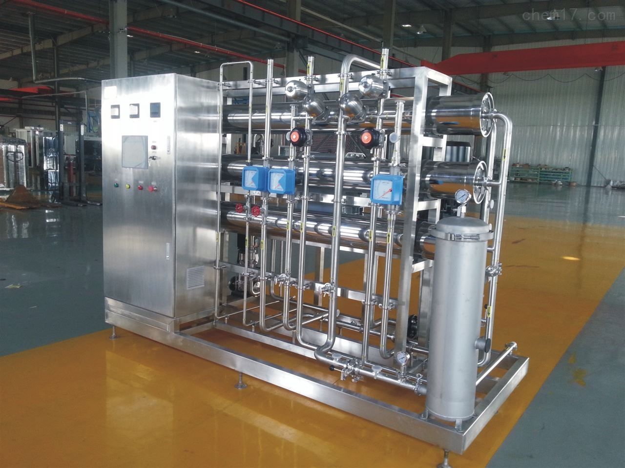 在第一級反滲透和第二級反滲透設備中均裝有在線電導檢測儀表,產(chǎn)水電導率可隨時觀看;